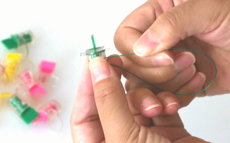 2.將旋葉旋轉(zhuǎn)至鉛封上面的孔和內(nèi)芯的圓孔對(duì)應(yīng)上的位置時(shí)候,再講另外一頭沒有固定的鉛封線,由外殼的圓孔,經(jīng)過內(nèi)芯的圓孔,穿至另外一側(cè),拉出。